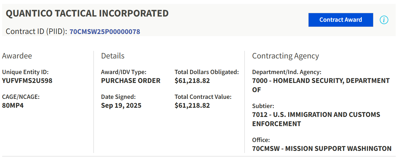 Quantico Tactical Inc. is a supplier that mostly deals in apparel and small arms. The description points to this purchase actually being something like flashbang grenades, which are already widely used by domestic law enforcement.